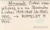 Almanach Cirkvi evanjelickej a. v. na Slovensku z rokov 1919-1928 (do 1930). 1930