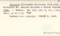 Almanach Východného Slovenska 1848-1948. Sostavili Dr. Emanuel Dolinka a Imrich Vindiš. 1948