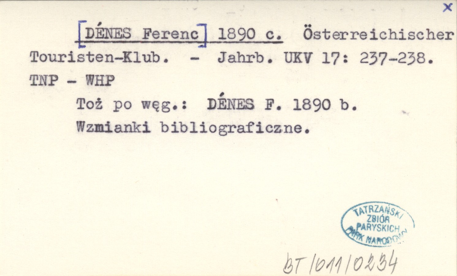 [DÉNES Ferenc] 1890 c Österreichischer Touristen-Klub.
