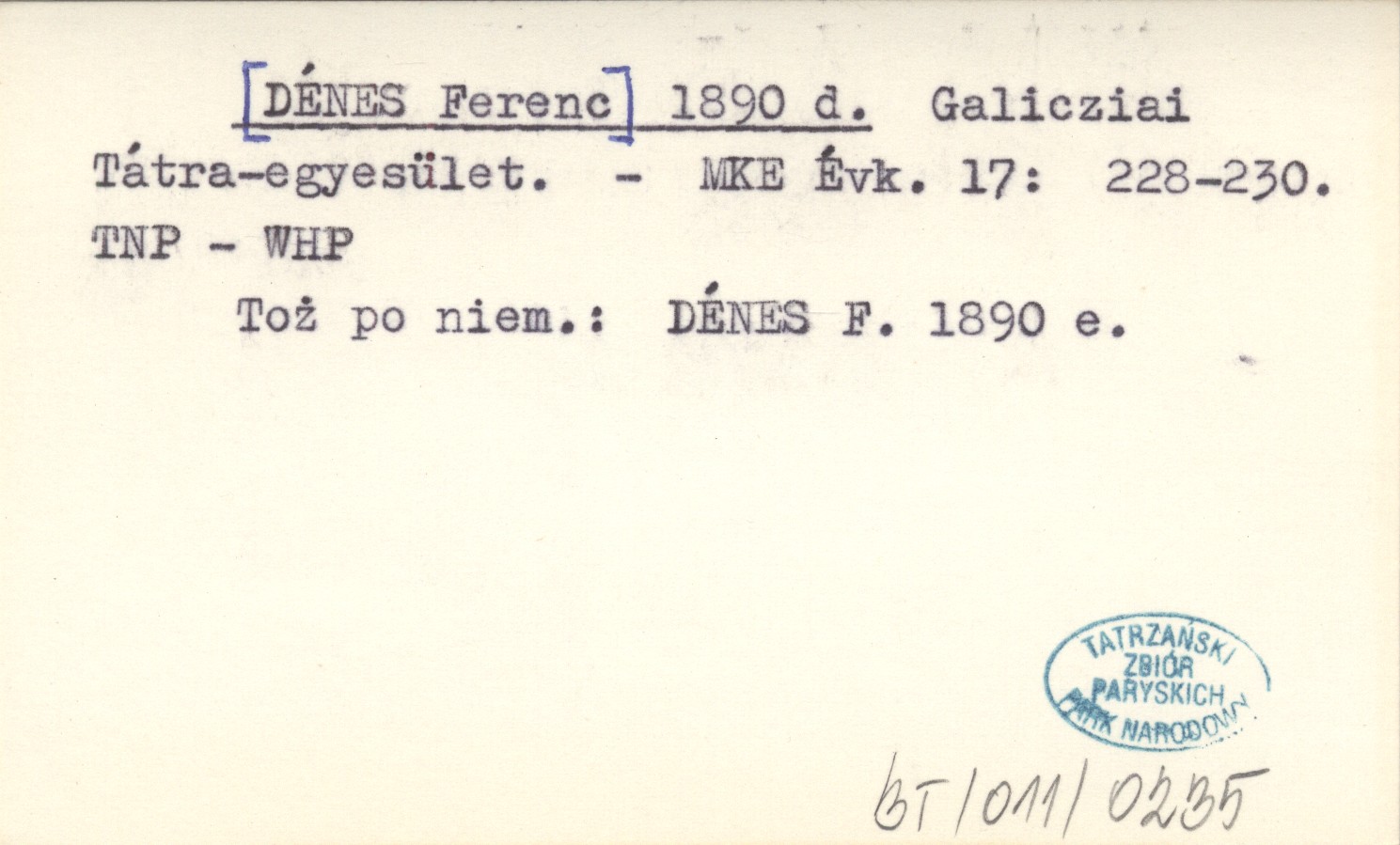 , 17: 228-230. Toż po niemiecku: DÉNES F. 1890 e.