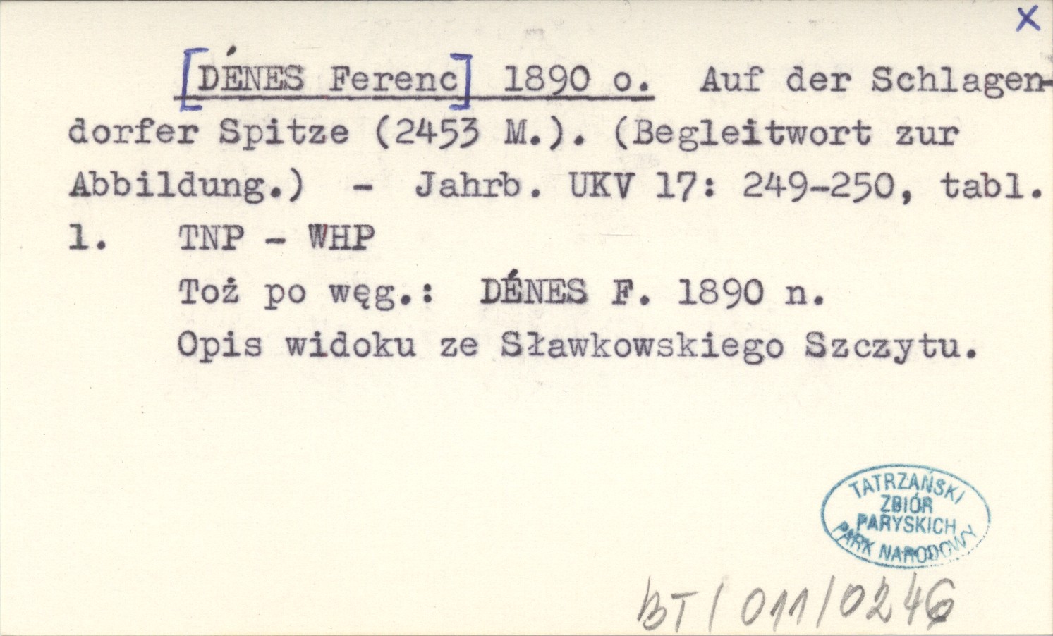[DÉNES Ferenc] 1890 o Auf der Schlagendorfer Spitze (2453 M.). (Begleitwort zur Abbildung).