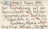 DÉNES Franz 1893 Der Touristenweg auf der Specialkarte des Militärgeographischen Instituts.
