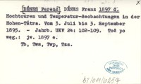 DÉNES Ferencz 1897 e Hegymászó kirándulások és léghőmérsékleti megfigyelések a Magas-Tátrában. 1895. julius 3-ától szeptember 3-áig.