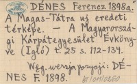 DÉNES Ferencz 1898 a A Magas-Tátra uj eredeti térképe.