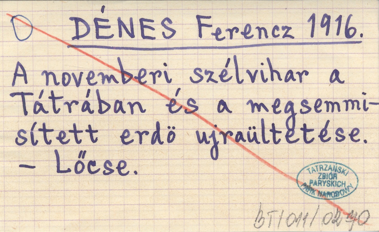 DÉNES Ferencz 1916 A noveberi szélvihar a Tátrában és a megsemmisített erdö ujraültetése.