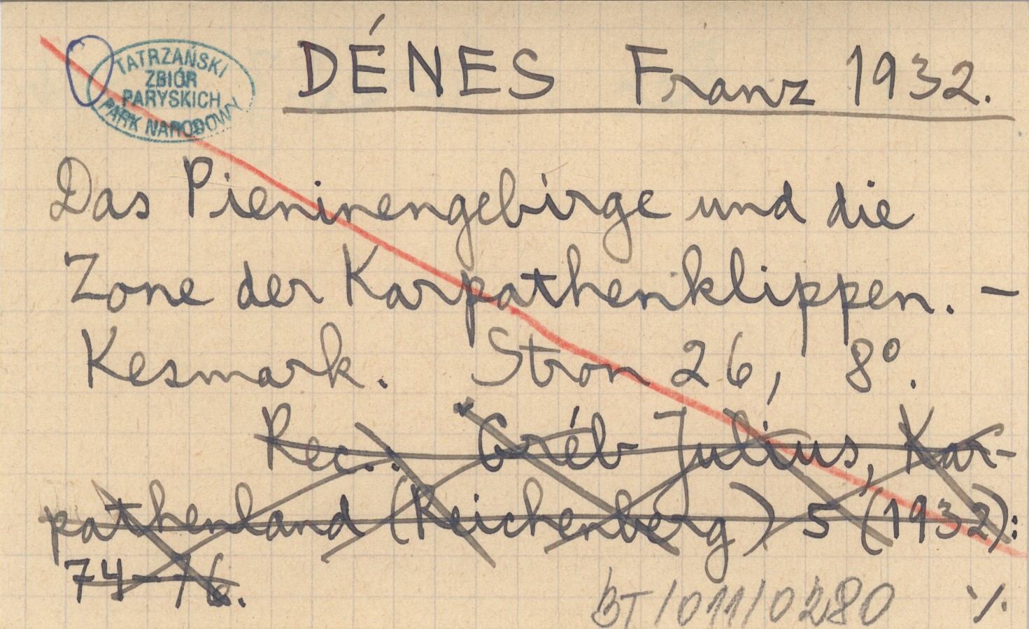 DÉNES Franz 1932 Das Pieninengebirge und die Zone der Karpathenklippen.