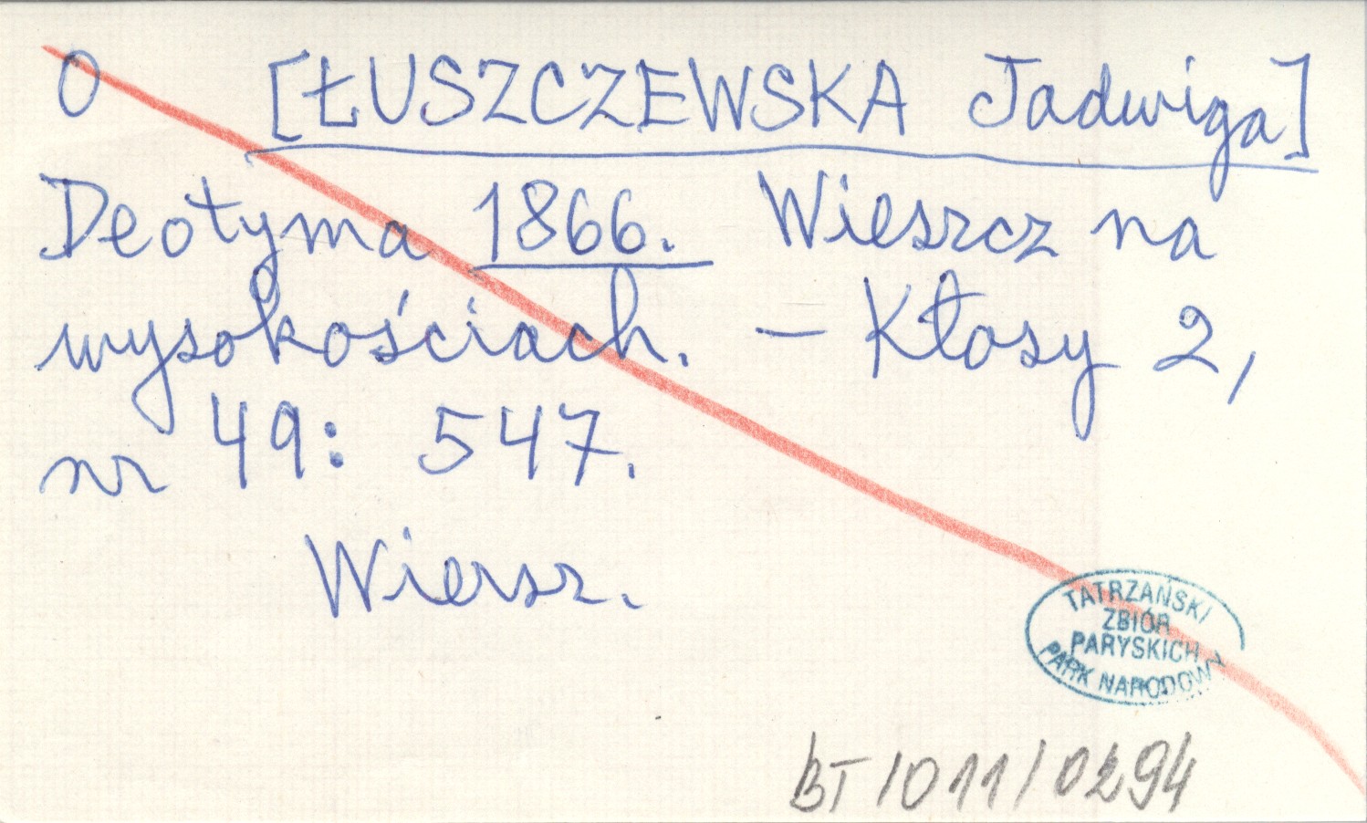 Deotyma [ŁUSZCZEWSKA Jadwiga] 1866 Wieszcz na wysokościach.