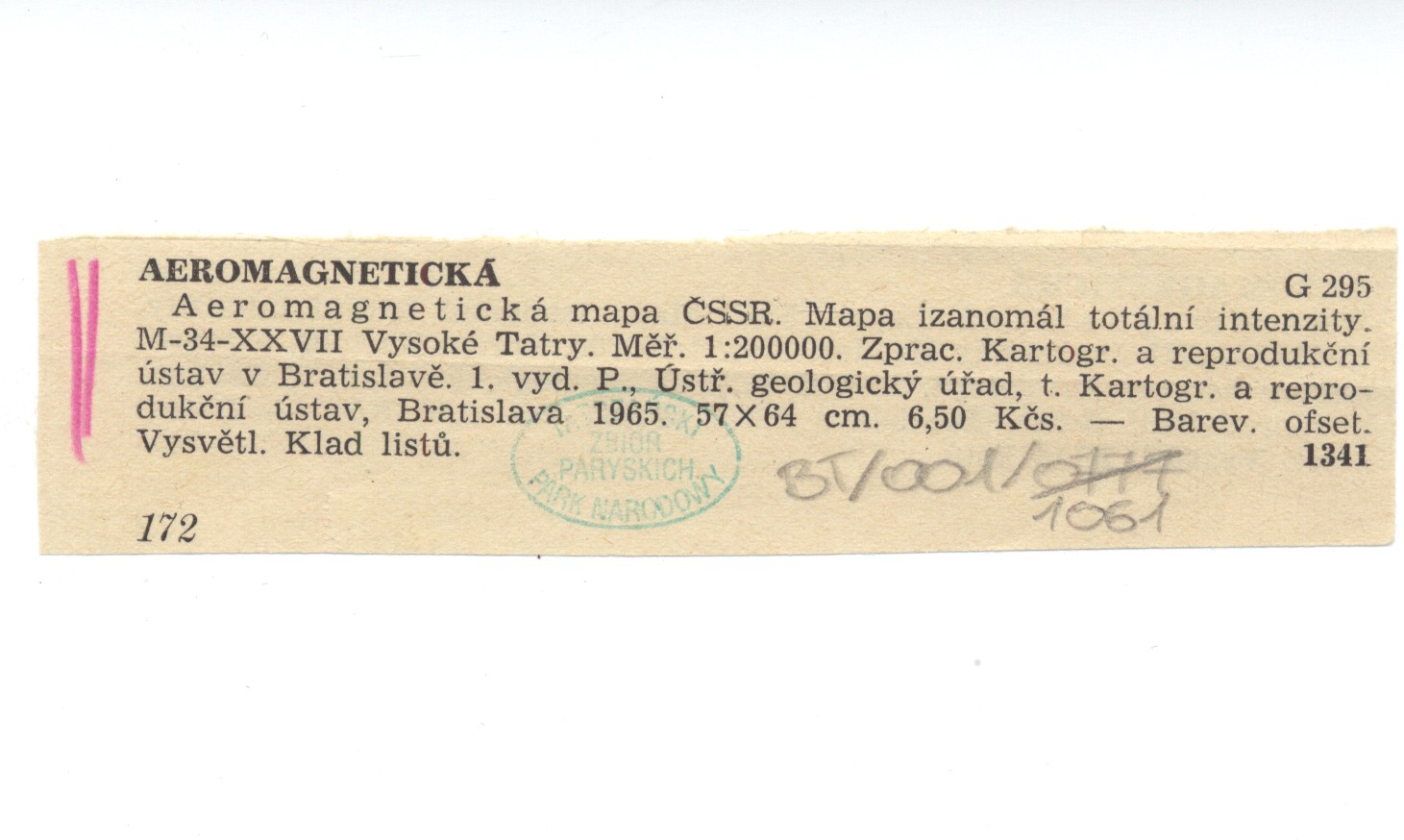 Aeromagnetická mapa ČSSR. Mapa izanomál totální intenzity. M-34-XXVII Vysoké Tatry. Skala 1:200 000.