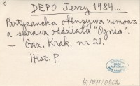 DEPO Jerzy 1984... Partyzancka ofensywa zimowa a sprawa oddziału "Ognia".