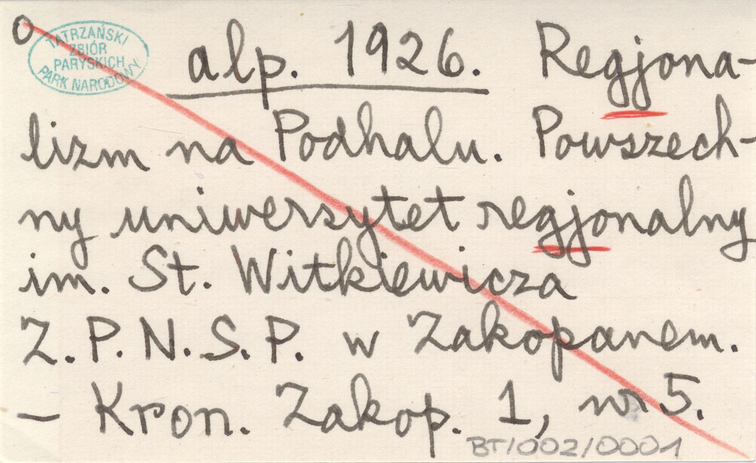 alp. 1926 Regjonalizm na Podhalu. Powszechny uniwersytet regjonalny im. St. Witkiewicza. Z.P.N.S.P. w Zakopanem.