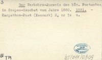 Der Verkhrs-Ausweis des kön. Postamtes in Szepes-Szombat vom Jahre 1880. 1881