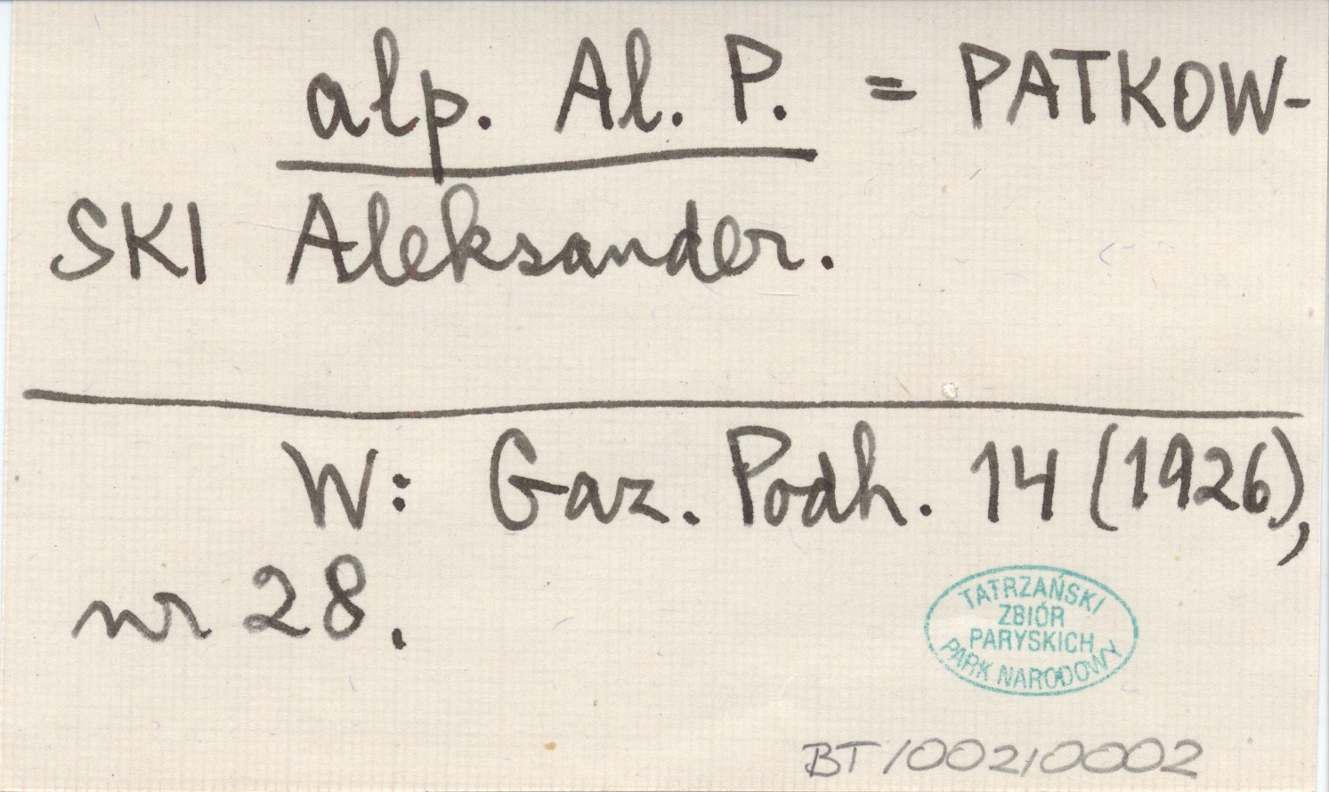 alp. Al. P. PATKOWSKI Aleksander Gazeta Podhalańska 14 (1926), nr 28.