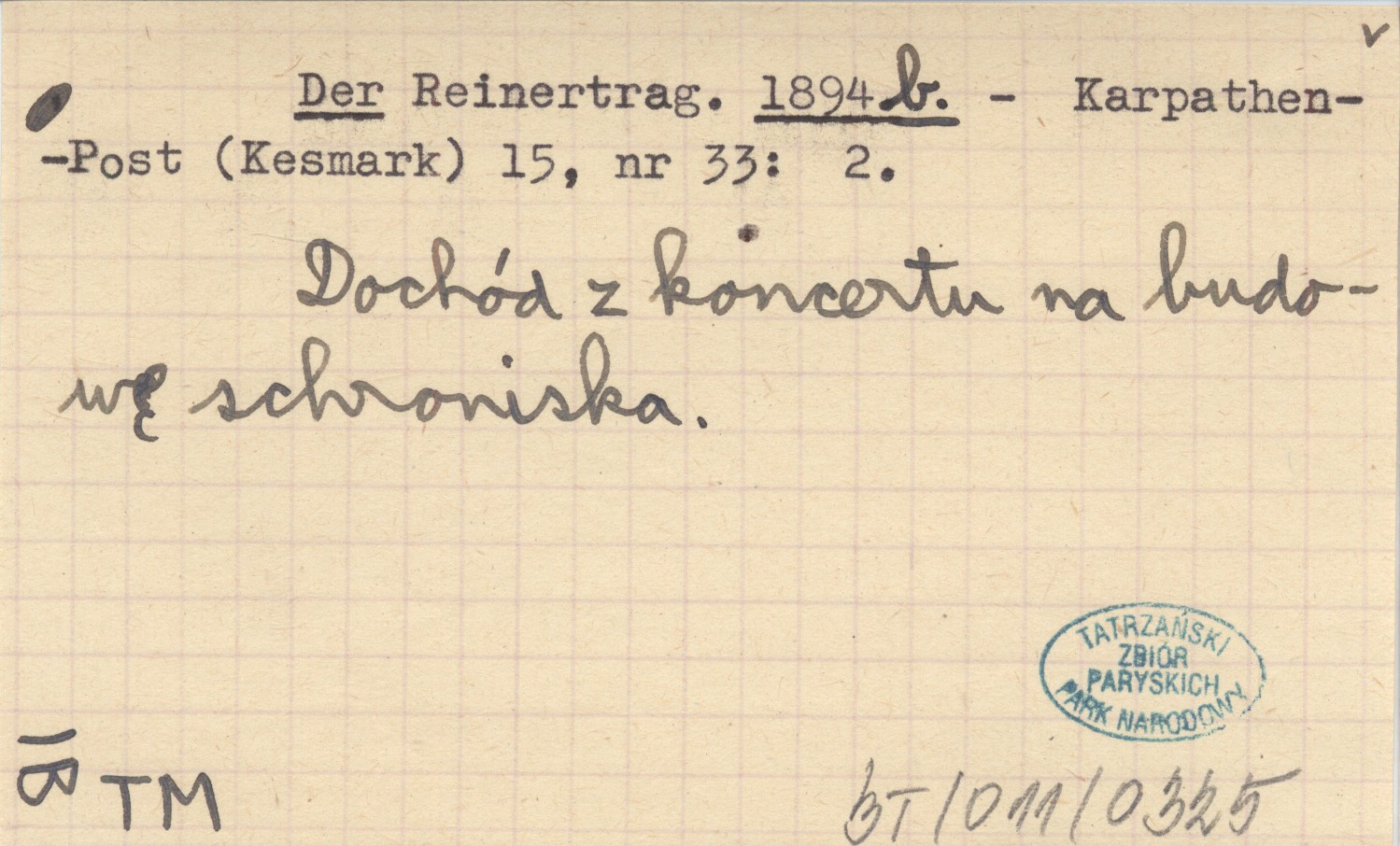 Karpathen-Post (Kesmark) , 15, nr 33: 2. Dochód z koncertu na budowę schroniska.