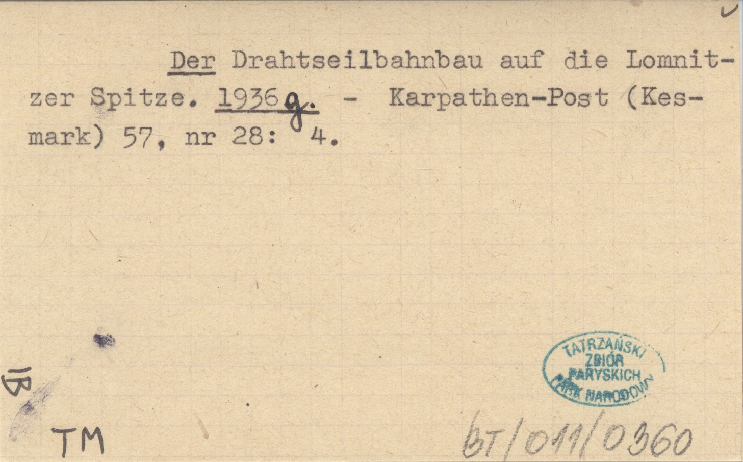 Der Drahtseilbahnbau auf die Lomnizer Spitze. 1936 g