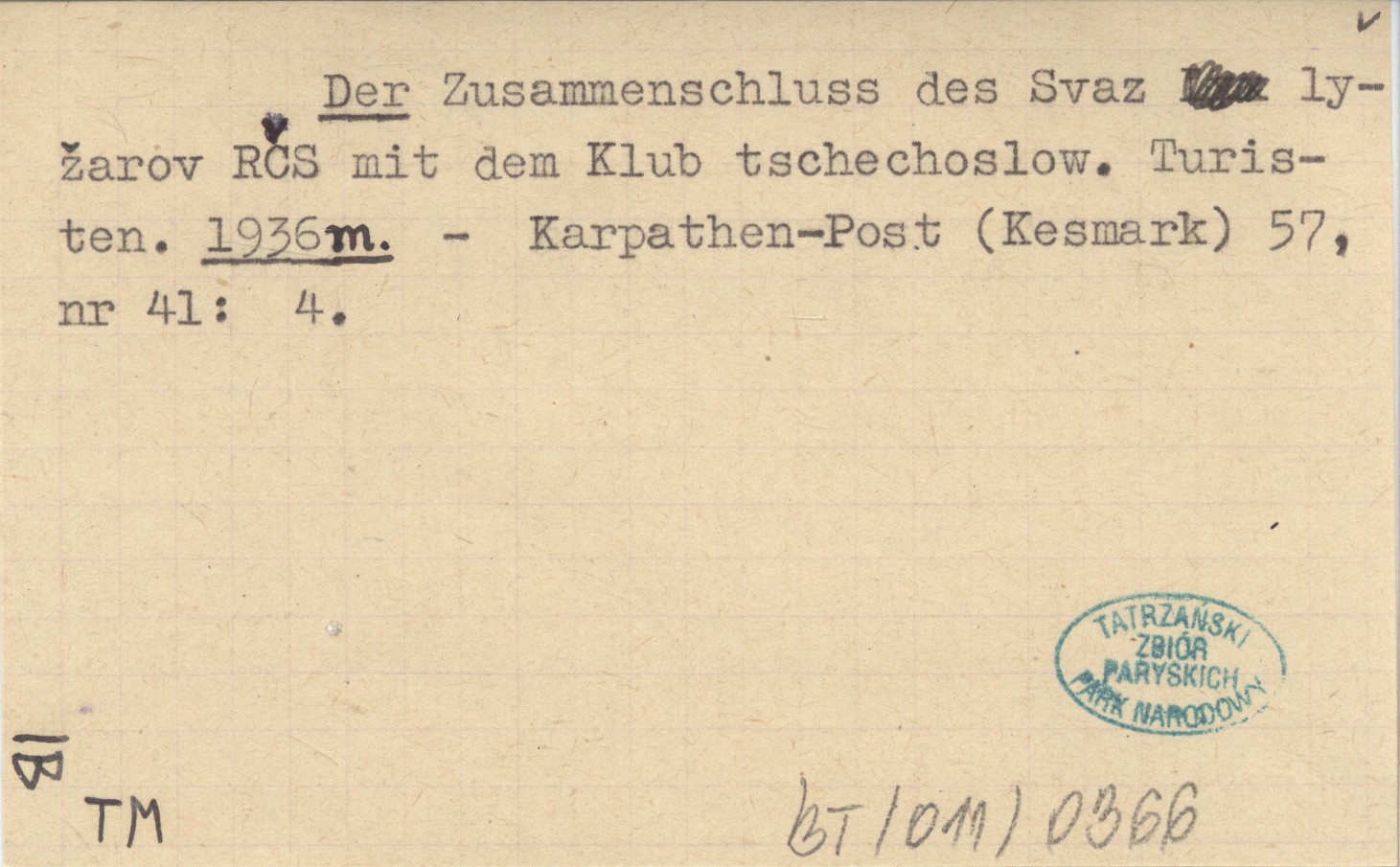 Der Zusammenschluss des Svaz lyžarov RCS mit dem Klub tschechoslow. Turisten. 1936 m