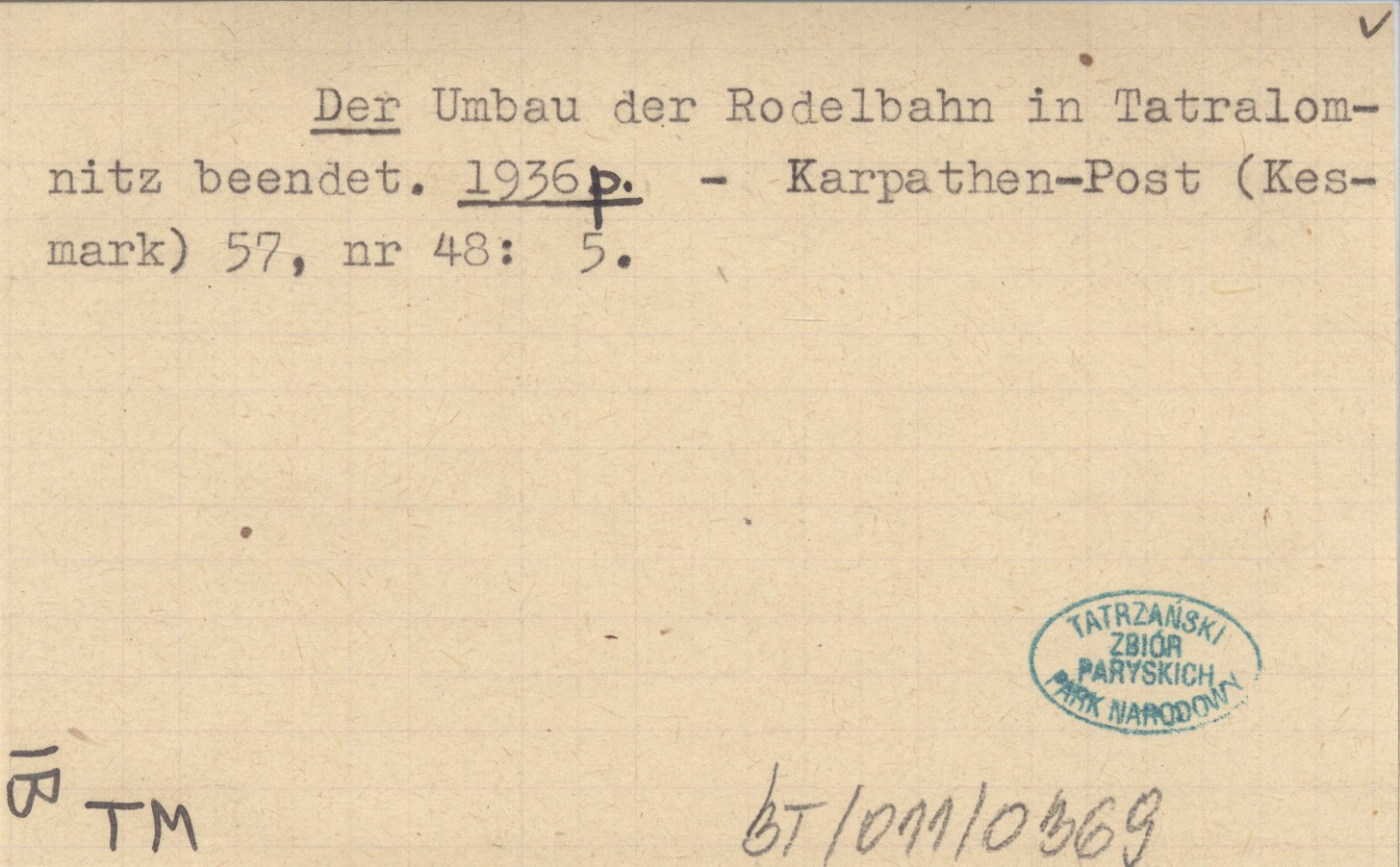 Der Umbau der Rodelbahn in Tatralomnitz beendet. 1936 p