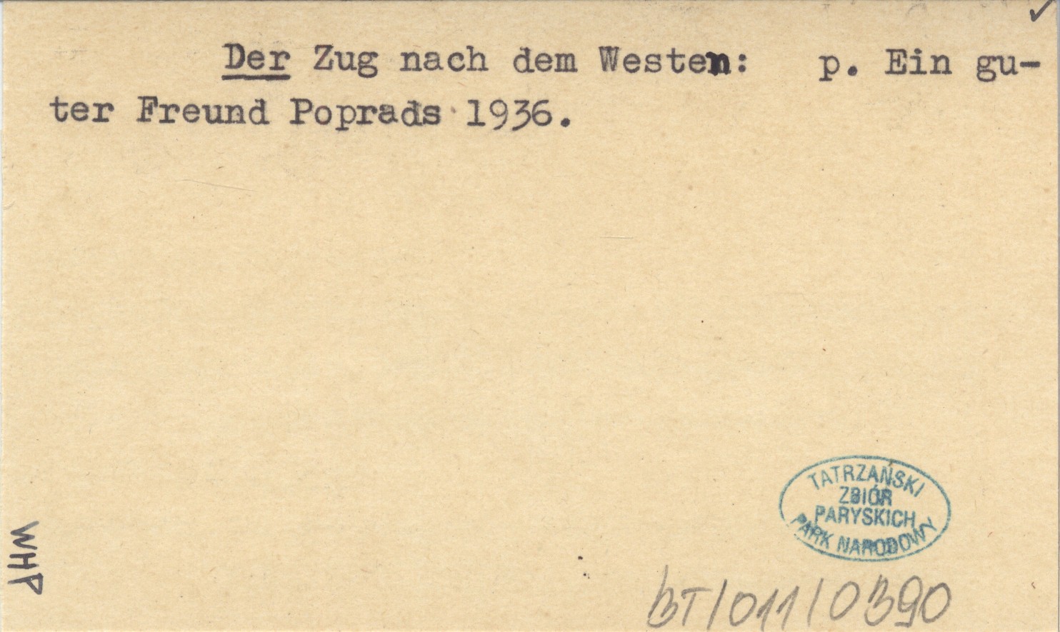 Der Zug nach dem Western: p. Ein guter Freund Poprads 1936.