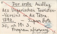 Der erste Ausflug des Ungarischen Touristen-Vereins in die Tátra. 1892