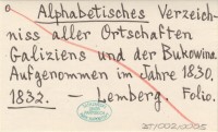 Alphabetisches Verzeichniss aller Ortschaften Galiziens und der Bukowina. Aufgenommen im Jahre 1830. 1832