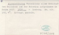 Alphabetisches Verzeichnis aller Ortschaften Galiziens und der Bukowina aufgenommen in Jahre 1857. 1858...