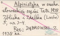 Alpinistyka w czechosłowackiej części Tatr. 1938