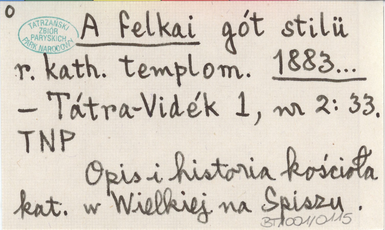 Tátra-Vidék, 1, nr 2: 33. Opis i historia kościoła katolickiego w Wielkiej na Spiszu.