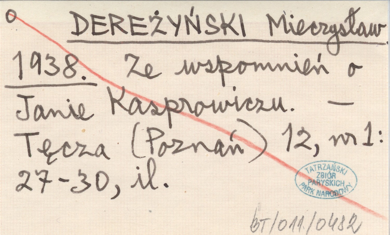 DEREŻYŃSKI Mieczysław 1938 Ze wspomnień o Janie Kasprowiczu.