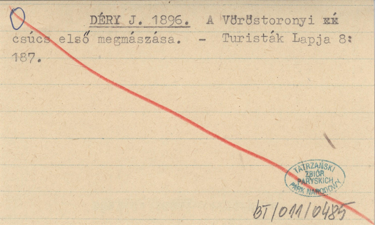 DÉRY J. 1896 A Vöröstoronyi csúcs első megmászása.