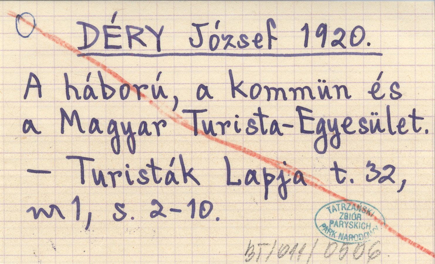 DÉRY József 1920 A háború, a kommün és a Magyar Turista-Egyesület.