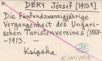 DÉRY József [1913?] Die fünfundzwanzigjährige Vergangenheit des Ungarischen Turistenvereines (1888-1913).