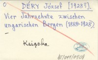 DÉRY József [1928?] Vier Jahrzehnte zwischen ungarischen Bergen (1888-1928).