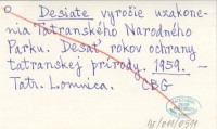 Desiate vyročie uzakonenia Tatranského Narodného Parku. Desa» rokov ochrany tatranskej prírody. 1959