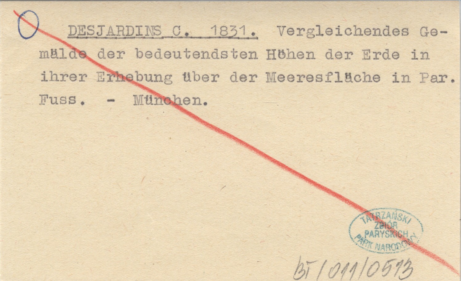 DESJARDINS C. 1831 Vergleichendes Gemälde der bedeutendsten Höhen der Erde in ihrer Rehebung über der Meeresfläche in Par. Fuss.