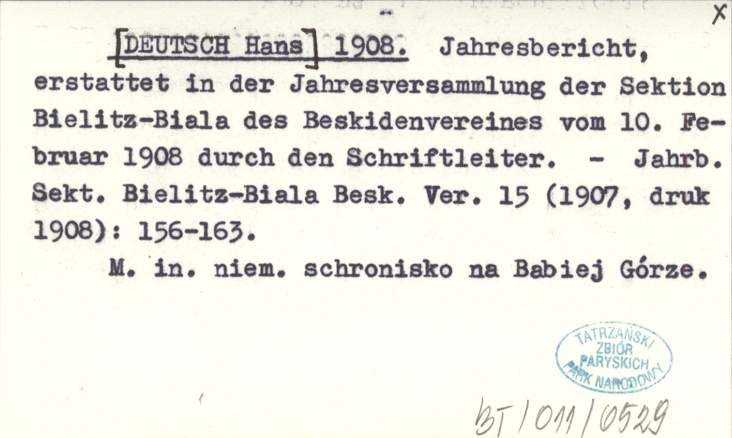 Jahresbericht der Sektion Bielitz-Biala des Beskiden-Vereines, 15 (1907, druk 1908): 156-163. M. in. niemieckie schronisko na Babiej Górze.