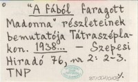 "A fából faragott Madonna" részleteinek bemutatója Tátraszéplakon. 1938...