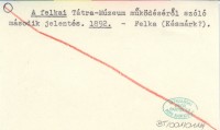 A felkai Tátra-Múzeum müködéséröl szóló második jelentés. 1892