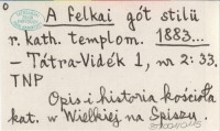 A felkai gót stilü r. kath. templom. 1883...