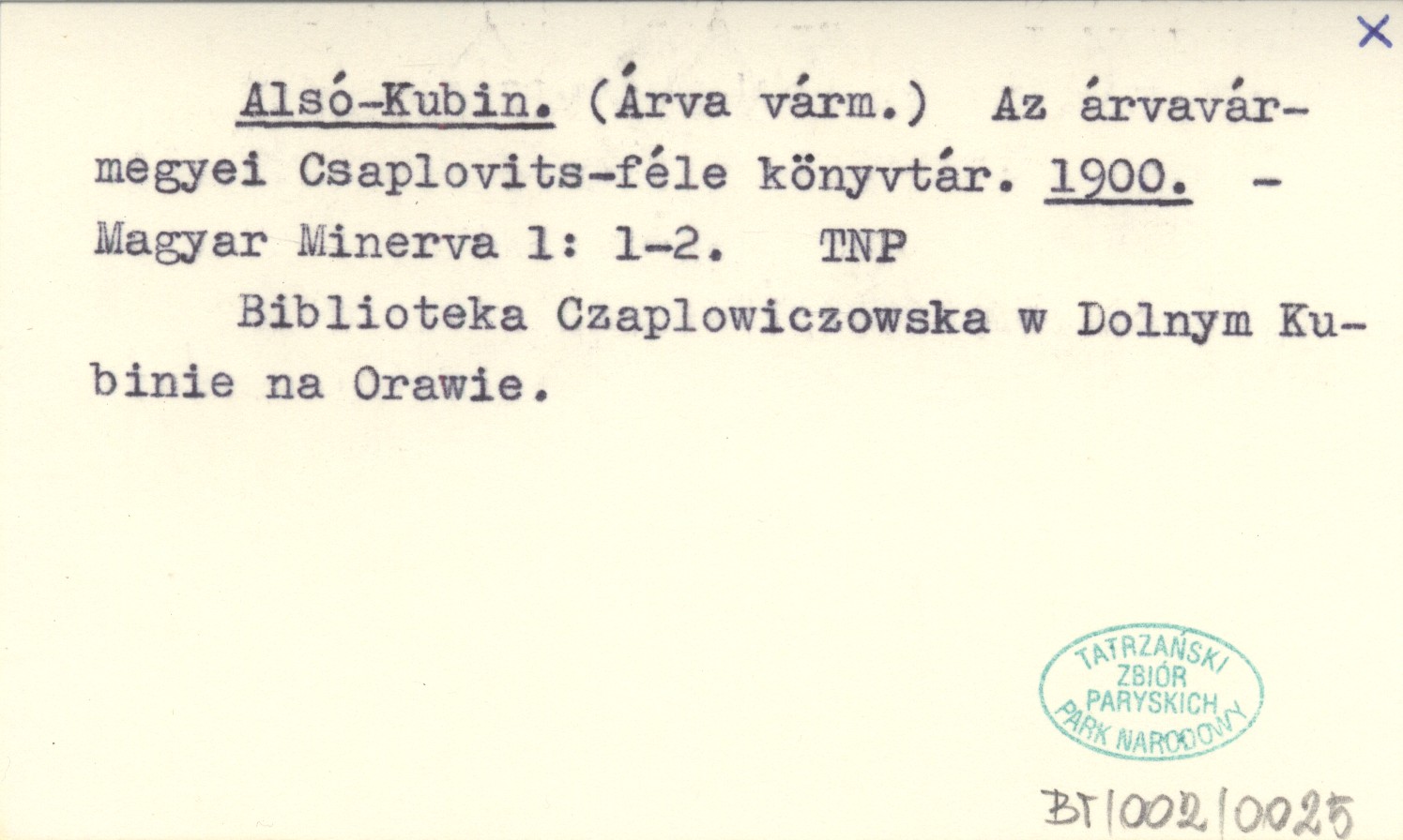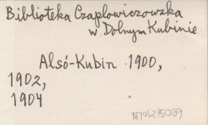 Alsó-Kubin. (Árva várm.) Az árvavármegyei Csaplovits-féle könyvtár. 1900