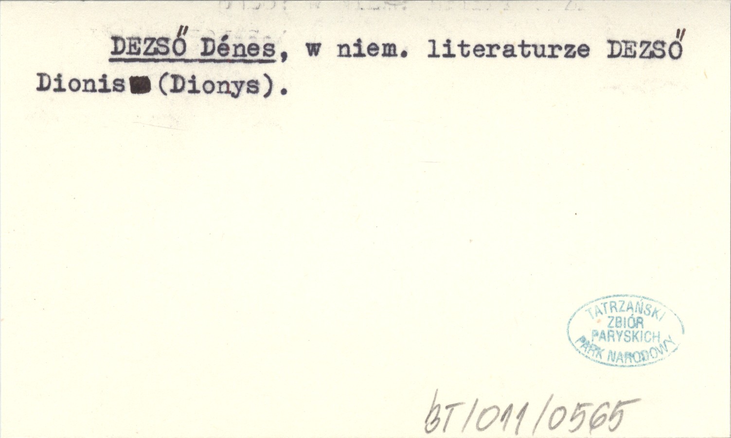 DEZSŐ Dionis (Dionys) DEZSŐ Dénes W niemieckiej literaturze.