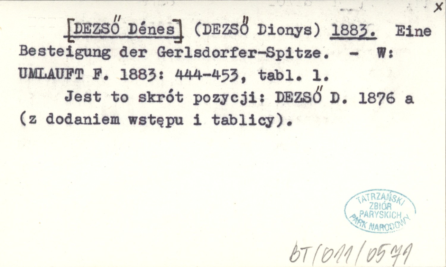 (DEZSŐ Dionys) [DEZSŐ Dénes] 1883 Ein Besteigung der Gerlsdorfer-Spitze.