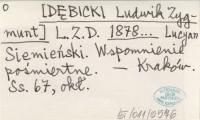 L. Z. D. [DĘBICKI Ludwik Zygmunt] 1878... Lucyan Siemieński. Wspomnienie pośmiertne.