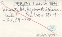 DĘBICKI Ludwik 1880 Wincenty Pol, jego żywot i pisma.