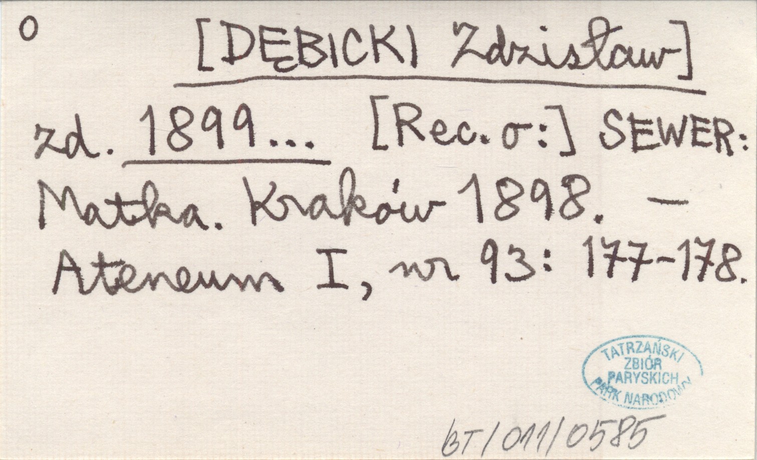 zd. [DĘBICKI Zdzisław] 1899... [Rec. o:] SEWER: Matka. Kraków 1898.
