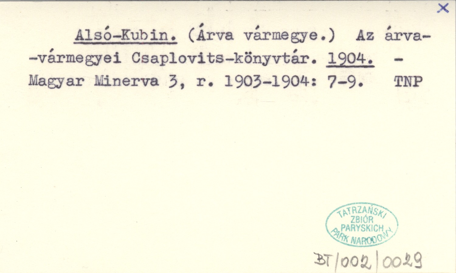 Alsó-Kubin. (Árva vármegye.) Az árvavármegyei Csaplovits-könyvtár. 1904