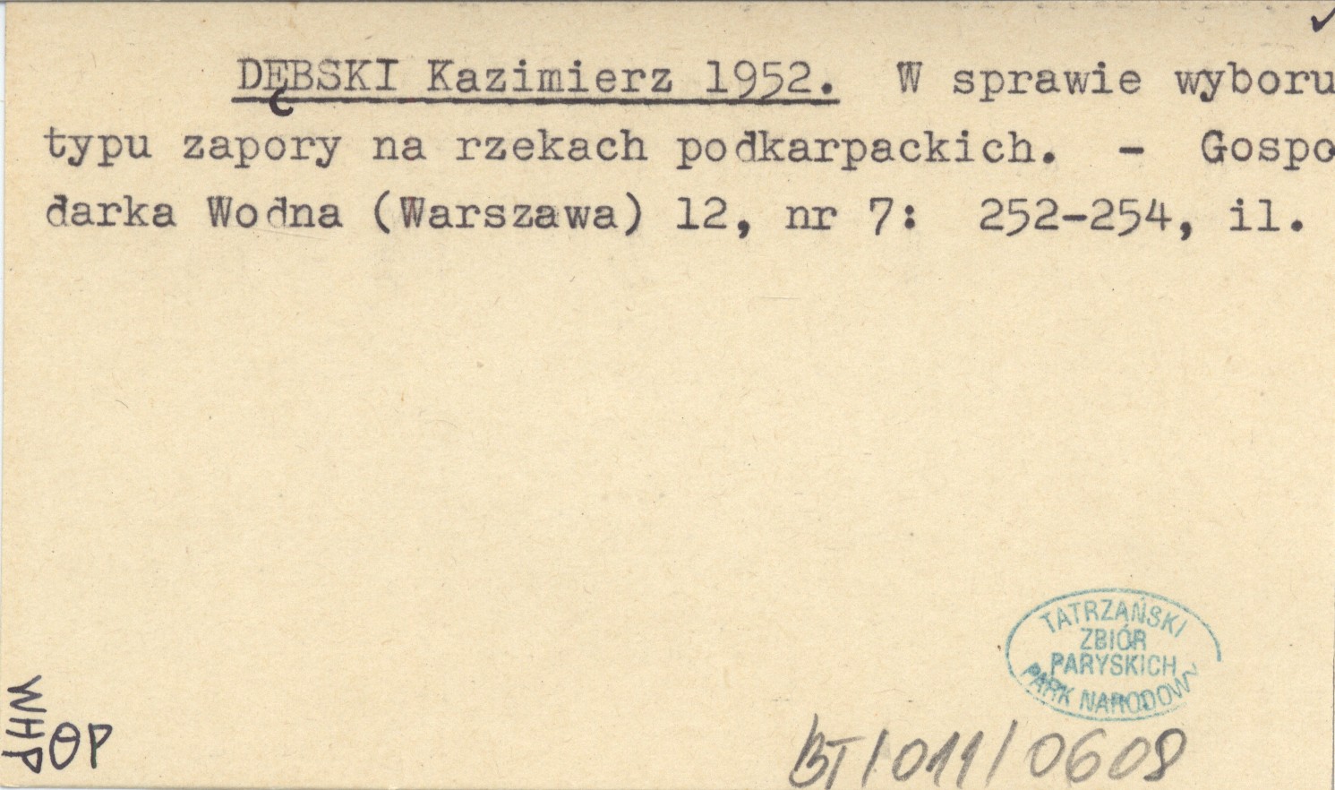 DĘBSKI Kazimierz 1952 W sprawie wyboru typu zapory na rzekach podkarpackich.