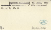 Kd. [DĘBNICKI Kazimierz] 1956 Film wysokogórski.