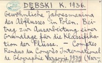 DĘBSKI K. 1936 Gewöhnliche Jahresmaxima des Abflusses in Polen. Beitrag zur Ausarbeitung einer Grundlage für die Klassifikation der Flüsse.