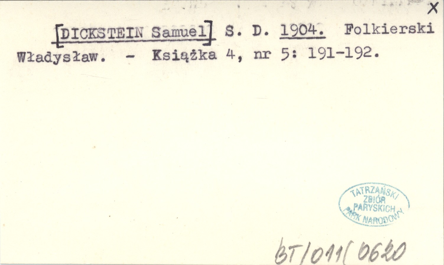 S. D. [DICKSTEIN Samuel] 1904 Folkierski Władysław.