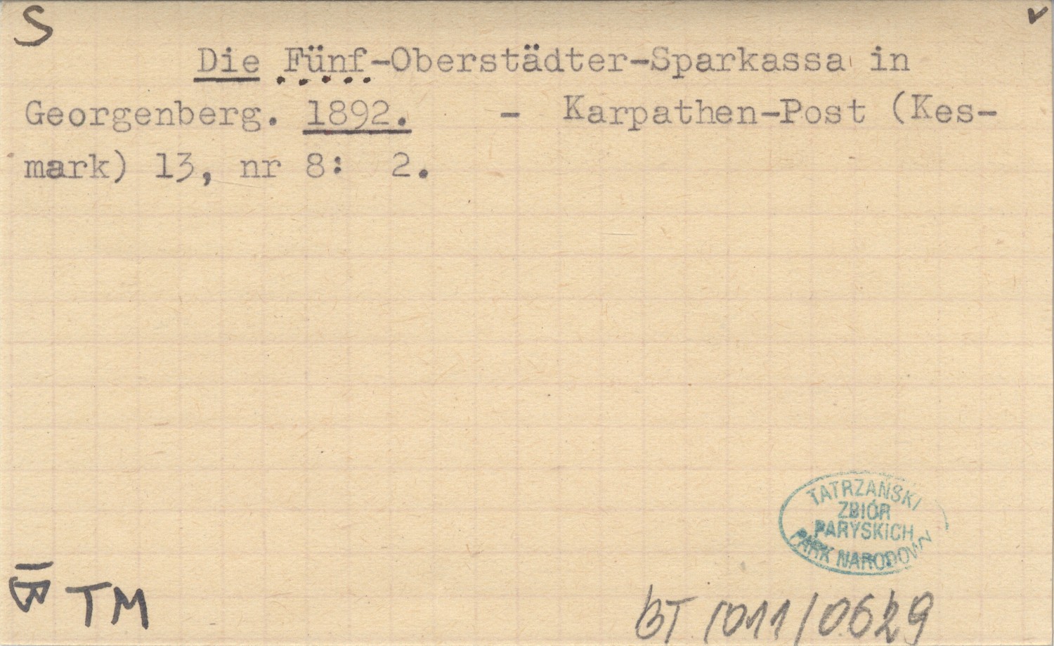 Die Fünf-Oberstädter-Sparkassa in Georgenberg. 1892