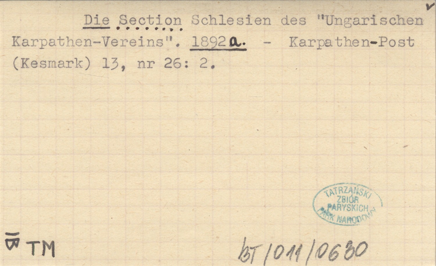 Die Section Schlesien des "Ungarischen Karpathen-Vereins". 1892 a
